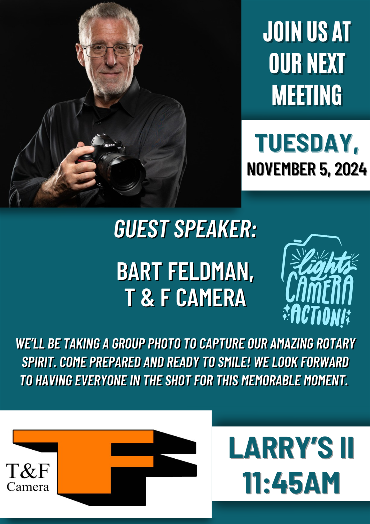 Sherry Soutiere reminded everyone that the blue cans on the tables will be used to collect for the Spirit & Truth Turkey Drive!