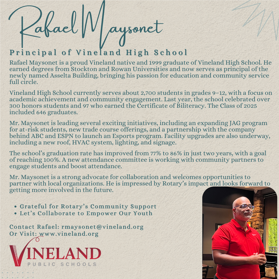 Joe O'Rourke introduced our speaker, Principal Rafael Maysonet.