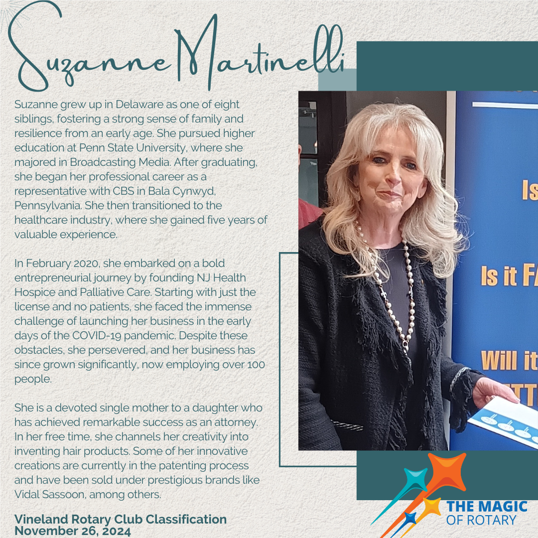 ~ Joseph (Joe) Cortez is being proposed for membership. Joe is the Executive Director of the Foundation at CompleteCare Health Network. He is a Bridgeton resident and currently a member of the Rotary Club of Bridgeton. Joe will be transferring to Vineland Rotary Club. Sponsor- Gail Marino.