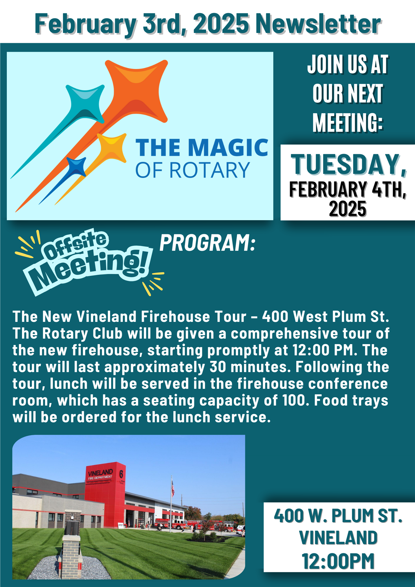 ~ Joseph (Joe) Cortez is being proposed for membership. Joe is the Executive Director of the Foundation at CompleteCare Health Network. He is a Bridgeton resident and currently a member of the Rotary Club of Bridgeton. Joe will be transferring to Vineland Rotary Club. Sponsor- Gail Marino.
