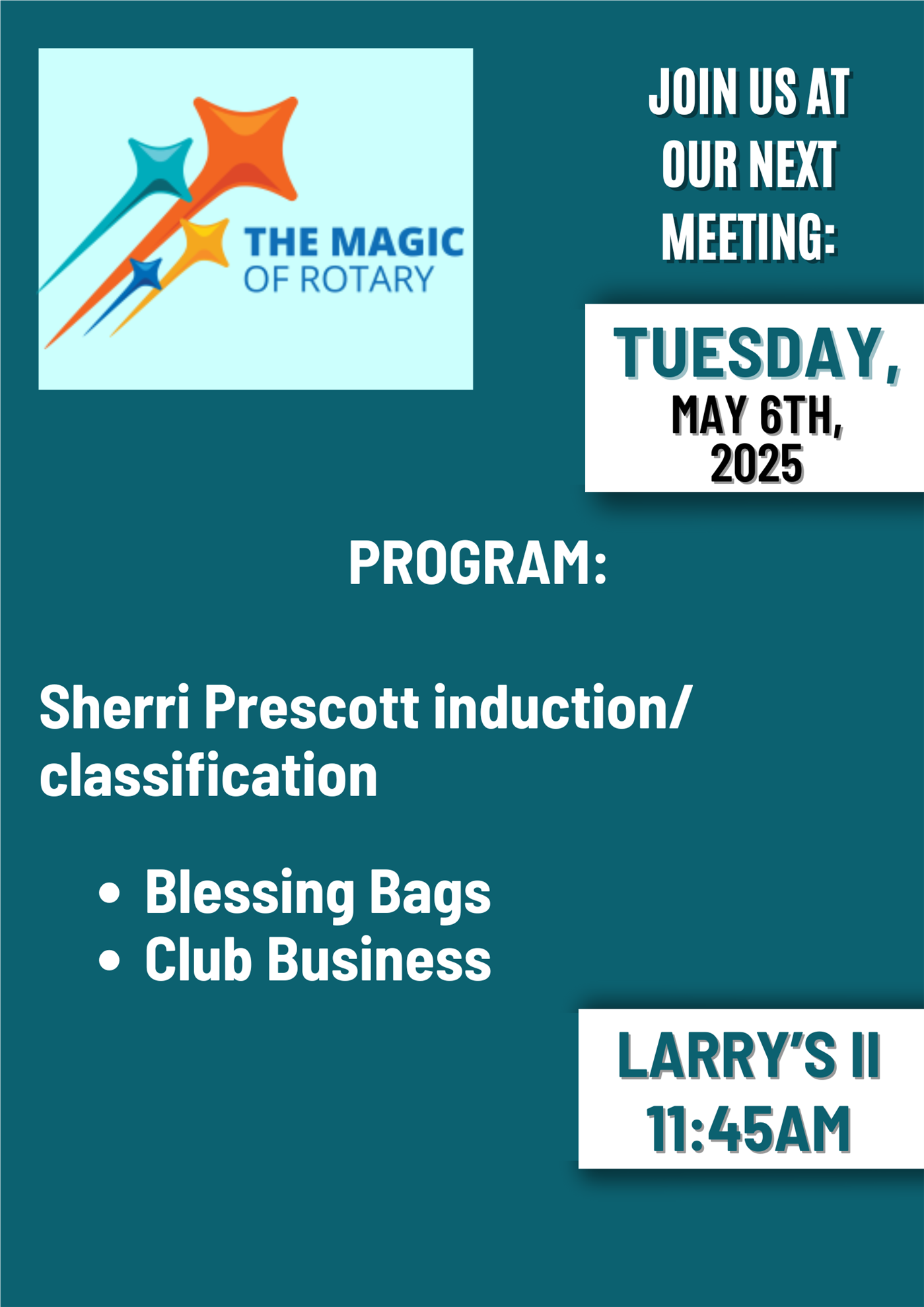 Please note: There will be no lunch meeting on 5/13/25